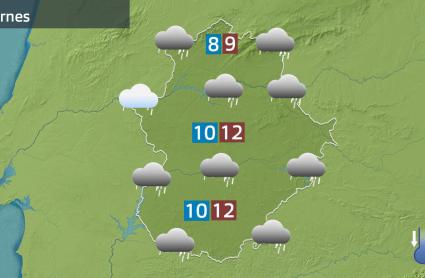 Así, ya esta noche y madrugada esperamos los primeros chaparrones por el oeste cacereño. Unas lluvias que se irán extendiendo al resto de la región en el primer tramo de la mañana y que aguantarán por la tarde. Jornada, por tanto, pasada por agua en Extremadura. Las temperaturas se mantendrán sin demasiadas variaciones. Las mínimas se quedarán entre los 8-10ºC y las máximas entre los 10-12.