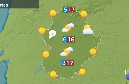 Y debido a esa estabilidad empezaremos la mañana con algunas nieblas en el Tajo y Guadiana. Serán bancos de niebla que desaparecerán más rápido en las Vega del Guadiana, mientras que los del Tajo podrán aguantar un poco más en el entorno del Campo Arañuelo y Monfragüe. En el resto poco nuboso y despejado. El viento soplará del nordeste en el Sistema Central y Llanos de Cáceres, sobre todo por la mañana, dejando sensación de temperatura en esa zona. Por la tarde estará más tranquilo.