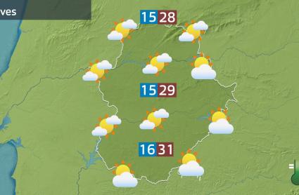 Las temperaturas se mantendrán sin cambios, por lo que seguirán muy altas para ser mediados de octubre. Únicamente descenderán de forma ligera en el sur de Badajoz, entre 1 y 2 grados. La próxima noche tendremos un ligero ascenso de las mínimas en todas las comarcas.