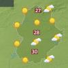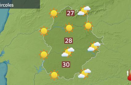 Eso en las mínimas, en las máximas decíamos, para esta tarde sí volveremos a hablar de valores alza. Hoy con ascensos que aunque generales se notarán más en las comarcas de la mitad norte y por el tercio oriental, por donde estos días las máximas han estado algo más bajas y que por aquí nos dejarán ya también valores por encima hoy de los 27-28 o hasta de los 29 grados. Mientras en el suroeste repetiremos los más de 30 grados de ayer ya en más estaciones incluso.