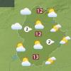Las temperaturas máximas subirán ligeramente en las comarcas del norte, donde el día se mostrará algo más abierto, mientras que en el resto no se esperan cambios significativos. Los valores quedarán en el rango de los 12 a 14 °C. El viento soplará flojo del oeste.