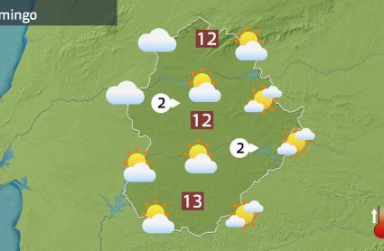 La mañana del domingo en Extremadura comenzó con intervalos de nubosidad media y baja, pero sin precipitaciones. Las temperaturas mínimas descendieron por debajo de los 6–7 °C, registrándose incluso algunas heladas en zonas de montaña, como en Piornal, donde se alcanzaron los 0 °C.