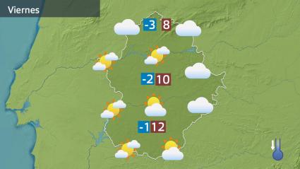 Para las próximas horas está prevista la llegada de intervalos nubosos de tipo alto por la parte más occidental. Según pase la tarde esos intervalos nubosos alcanzarán las comarcas más orientales. Momentáneamente podrán quedar los cielos velados. En cualquier caso, no se esperan precipitaciones. El viento será del este, flojo. Las temperaturas subirán ligeramente por el tercio sur, donde alcanzaremos los 25ºC.