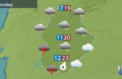 Los avisos amarillos por lluvias y tormentas se activarán en toda la región entre las 10 de la mañana y las 10 de la noche. En las comarcas pacenses, excepto la Siberia, el aviso se activa porque se pueden acumular 20 mm en una hora. En el resto de la región el aviso amarillo implica que el acumulado puede ser de 15 mm en una hora.