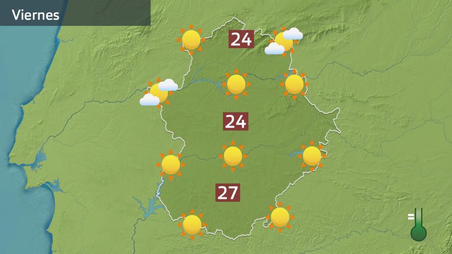 Lo que resta de día no nos dejará muchas más novedades. Aguantará el tiempo soleado en las dos provincias extremeñas, con termómetros que se colarán con facilidad de la raya de los 22-24ºC en la mayoría de las localidades; en la vega del Guadiana rondaremos los 26-27ºC- Todo ello con dominio del ambiente despejado; si acaso con algún intervalo nuboso de tipo alto, sin mayor trascendencia. El viento soplará flojo del norte.
