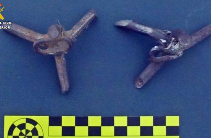 Durante un dispositivo de control, con la colaboración de la guardería rural, los agentes interceptaron un vehículo sospechoso ocupado por los dos investigados, ambos con antecedentes por furtivismo. En su interior hallaron una bolsa con gran cantidad de clavos coincidentes con los encontrados en la finca y ocho cámaras de fototrampeo, de las que no pudieron acreditar su propiedad.