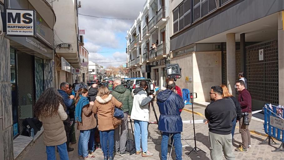 Exteriores de los Juzgados de Villafranca de los Barros ante la puesta a disposición judicial de los detenidos por el caso de Francisca Cadenas.