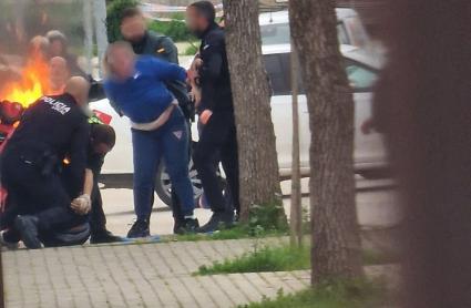 El altercado comenzó cuando un hombre roció con gasolina un ciclomotor y le prendió fuego, provocando que las llamas alcanzaran a uno de los policías que intervenían. Los dos agentes locales, miembros del sindicato, tuvieron que recibir atención médica por diversas lesiones tras una actuación que califican de “máximo riesgo”. Ambos se encuentran de baja.