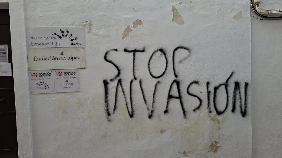 Denuncian una pintada xenófoba en la sede de la Fundación Ruy López de Almendralejo