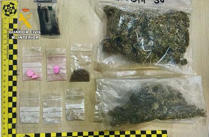 En concreto, se hallaron "dos bolsas con cogollos de marihuana, metanfetamina, comúnmente conocida como MDMA, distribuida en cuatro pequeñas bolsitas de plástico y dos pastillas y media de anfetaminas, guardadas en dos bolsitas".