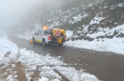 Imagen de Archivo. Máquina quitanieves retirando nieve en la carretera hacia el Pico Villuercas.