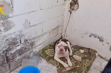 A su llegada, los agentes escucharon los gemidos del animal, que se encontraba atado con una cuerda de apenas 40 centímetros, sin acceso a agua ni alimento, y sin ningún tipo de refugio. El perro, de raza American Bully, estaba expuesto a las inclemencias del tiempo y únicamente contaba con una manta en el suelo.