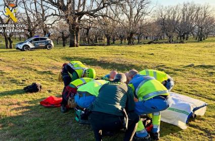 La Central 062 de la Comandancia de Cáceres movilizó de inmediato una patrulla de Seguridad Ciudadana y al Grupo de Rescate e Intervención en Montaña (GREIM) de Barco de Ávila, que se desplazó en un helicóptero del Servicio Aéreo de la Guardia Civil hasta el lugar del incidente.