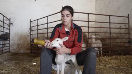 Isabel y Lidia vigilan que sus ovejas no coman demasiada soja