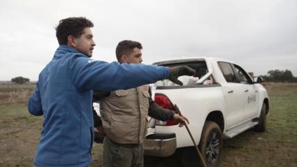 María y Javi revisan el nivel del agua de sus charcas