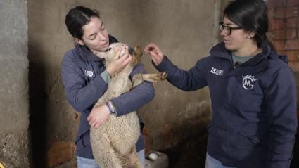 Esther enseña a los borregos más pequeños a mamar de la máquina nodriza