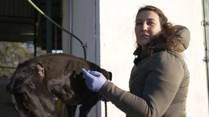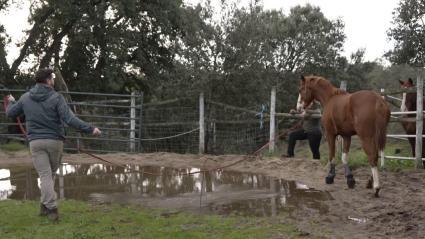 Iris, amiga de María Mora, le ayuda a peinar a su caballo Inaghi