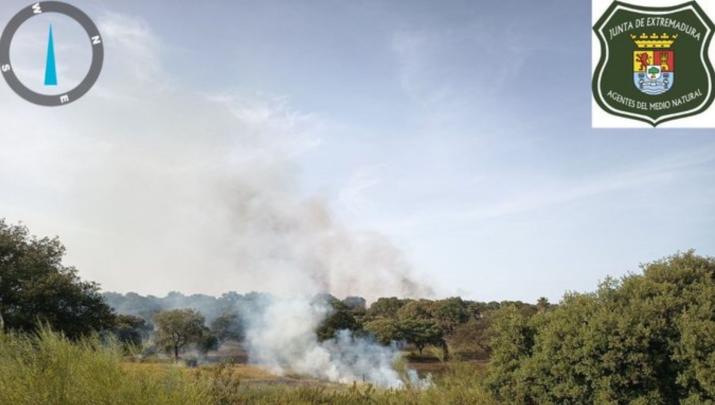 La evolución favorable del fuego permitió rebajar el riesgo tras intervenir efectivos del Plan Infoex y bomberos de la Diputación de Badajoz