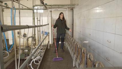 Esther pone a punto la sala de ordeño