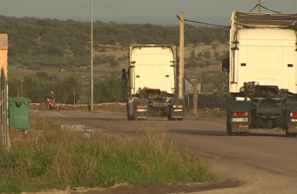 A golpe de claxon. Así han partido de Miajadas esta tarde parte de los transportistas con sus camiones hacia Madrid. Y en Navalmoral han hecho una parada.