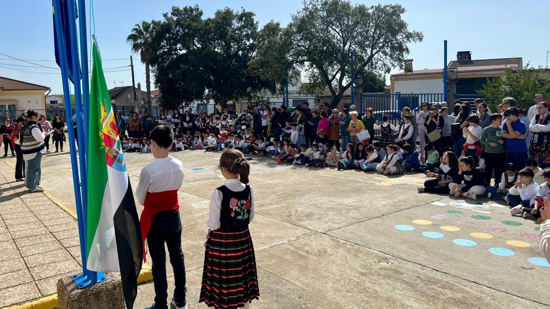 Tras diversas actividades organizadas por ciclos y el recreo, la comunidad educativa se reunió a partir de las 12:30 horas para participar en los actos colectivos programados para este día. Entre ellos, la lectura del manifiesto, el himno y el izado de la bandera, así como la interpretación de la canción “Sangüijuelas del Guadiana”, que puso el toque musical a la celebración.