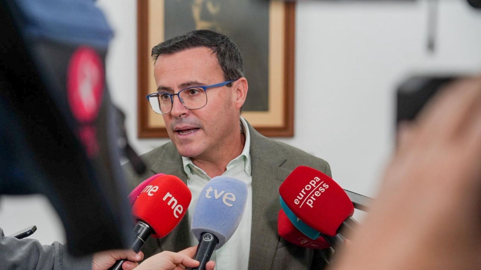 Miguel Ángel Gallardo, líder del PSOE extremeño, atiende a los medios en el inicio de una ronda de reuniones con los agentes sociales de cara a las Elecciones del 21 de Diciembre.