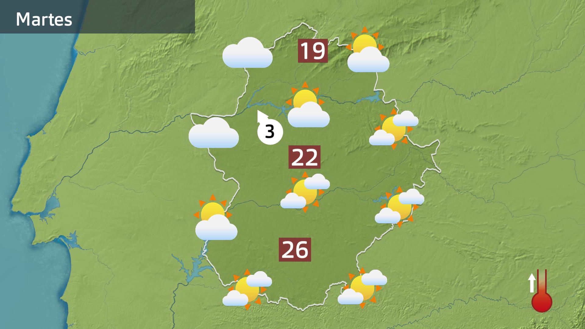 Nubes que a medida que avance la tarde ya sí serán algo más compactas y abundantes y que nos dejarán un tramo final del día con el cielo algo más que nuboso o tapado incluso por las comarcas del tercio norte y el oeste de Extremadura e incluso, aunque aún de manera muy puntual, las primeras lluvias en zonas altas por ejemplo de la sierra de Gata. Lluvia que a lo largo de la jornada de mañana ya sí serán generales de nuevo, generosas y a ratos incluso de cierta intensidad.