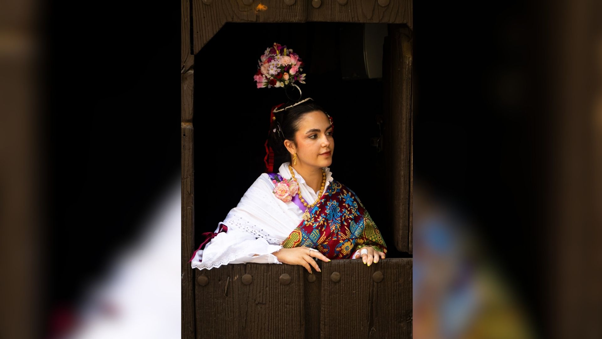 "Un preciso retrato de una de las danzantes del tradicional baile de las Italianas de Garganta la Olla. Apoyada en el postigo de un portón, la figura presenta los elementos más característicos de su indumentaria", indica el acta del jurado.