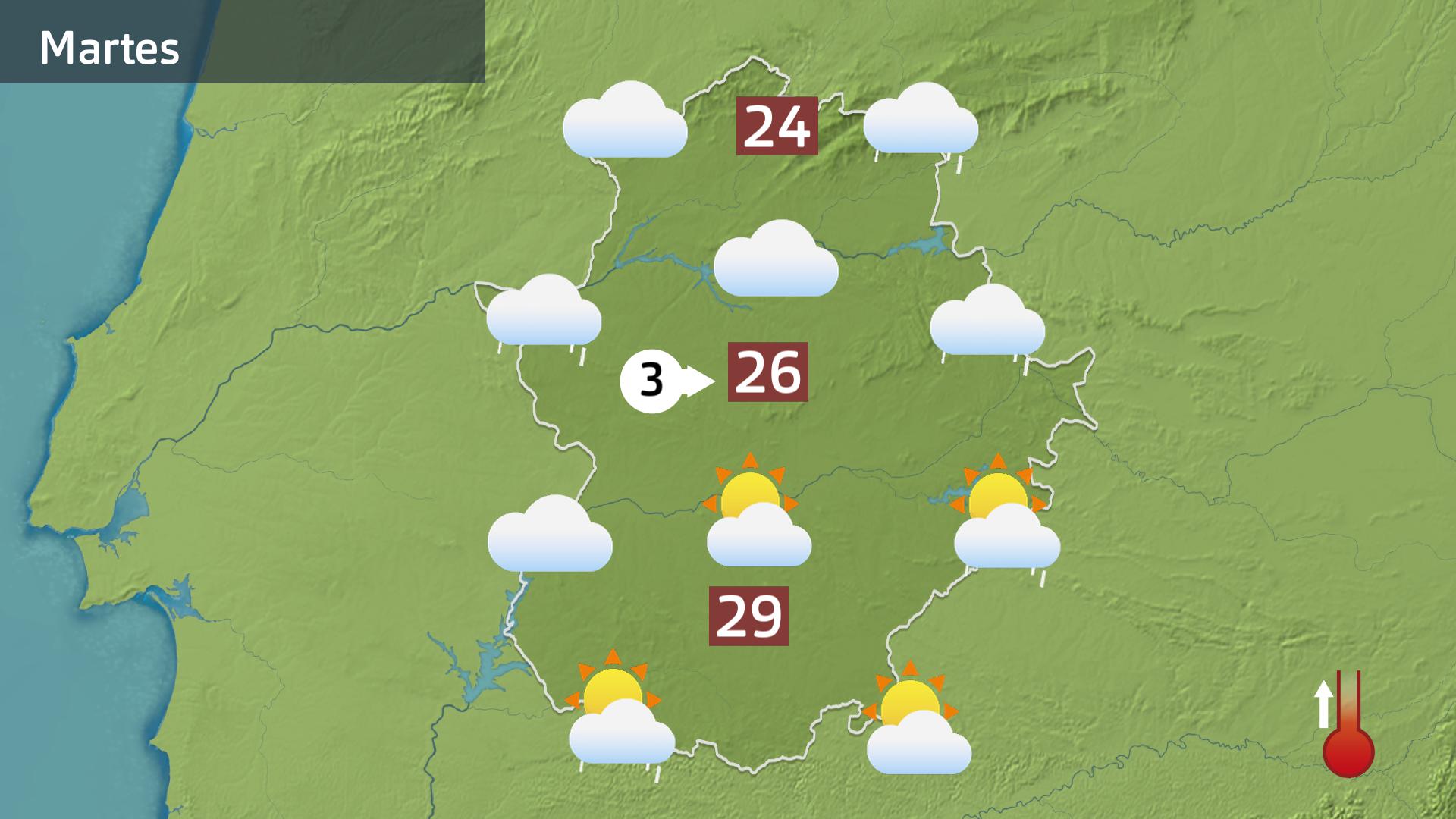 De todas formas, como ayer, la tendencia es que a medida que avance el día, la segunda mitad del día ya sobre todo, comiencen a abrirse claros en todas las comarcas. Aunque a diferencia de ayer, para esta tarde, entre todos esos claros, se formarán algunos chaparrones que descargarán de nuevo sobre todo por el norte de la región, por donde el día sí mantendrá un ambiente algo más nuboso o de manera algo más puntual también por otros puntos del centro e incluso hacia la mitad sur.