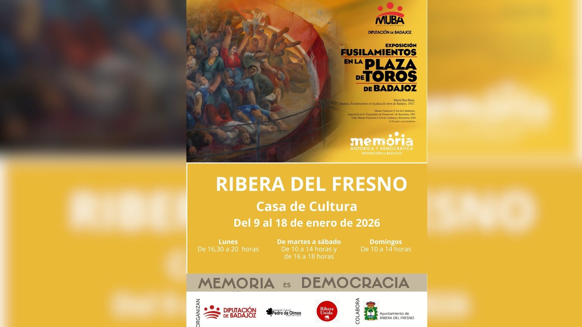 La exposición, organizada por la Asociación Cultural Pedro de Olmos, Ribera Unida y el servicio de Memoria Democrática de la Diputación de Badajoz, con la colaboración del Ayuntamiento de Ribera del Fresno, podrá visitarse desde mañana, día 9, en horario de tarde.