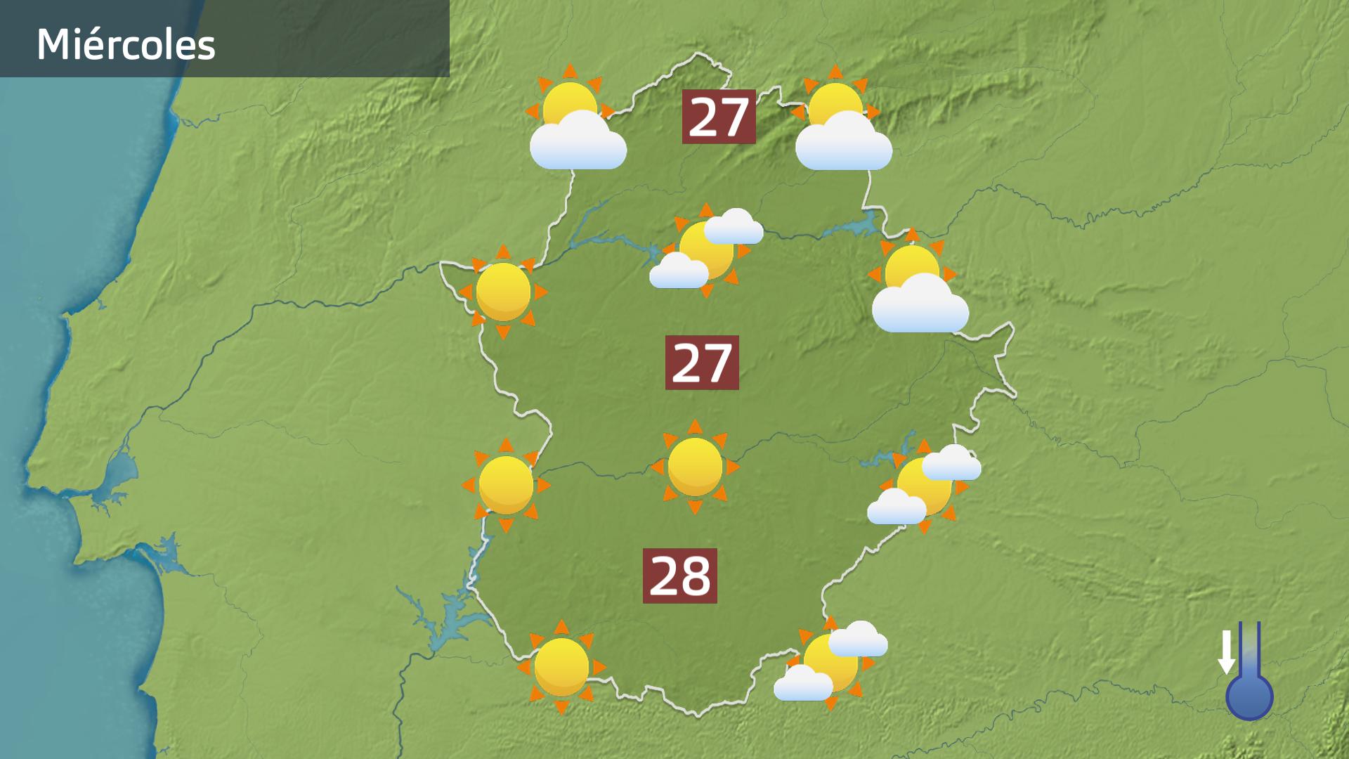 Una de las novedades del día la encontramos en los termómetros, que hoy bajarán de manera ya generalizada. Un descenso que de todas formas no evita que esta mañana todavía veamos mínimas en algunas zonas urbanas o de manera puntual en algunas estaciones de la mitad norte y el este de Extremadura por encima de los 18 grados.