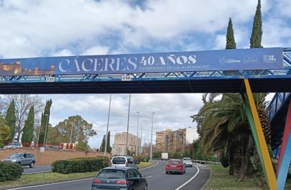 La Concejalía de Turismo del Ayuntamiento de Cáceres ha procedido a la sustitución de diversas lonas ubicadas en distintos puntos de acceso a la ciudad por nuevos soportes centrados, en esta ocasión, en la conmemoración del 40 aniversario de su declaración por la Unesco como Ciudad Patrimonio de la Humanidad.