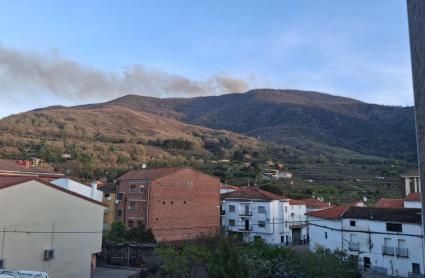 Columna de humo del incendio en Losar de la Vera vista desde el consistorio municipal.