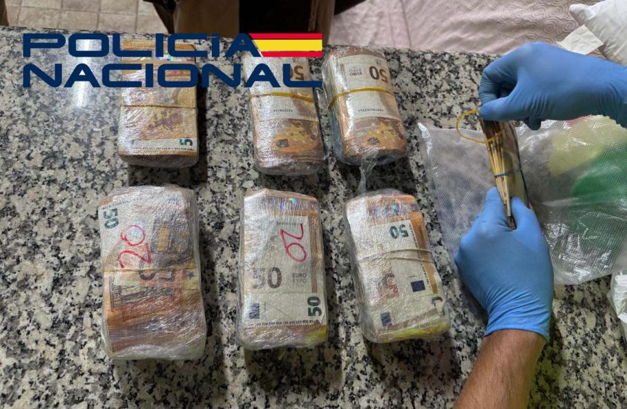 Durante el registro se intervino una mesa con doble fondo que ocultaba más de treinta kilogramos de cocaína, así como una caja fuerte con más de 80.000 euros.