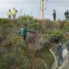 Agentes de la Guardia Civil durante la búsqueda para localizar a dos personas que viajaban en los trenes accidentados.