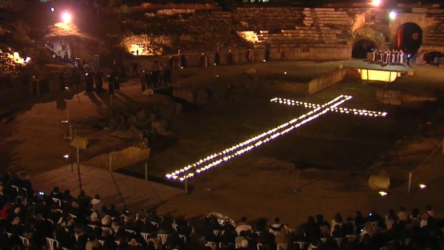 La imagen del Cristo de la O procesionará la próxima madrugada en la Semana Santa de Mérida para el rezo de las Estaciones del Vía Crucis en el Anfiteatro Romano. Se trata de una de las celebraciones de mayor espectacularidad de la Semana de Pasión emeritense, declarada Fiesta de Interés Turístico Internacional, y que mezcla fe y tradición en un escenario patrimonial único.