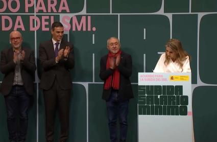 La vicepresidenta segunda y ministra de Trabajo, Yolanda Díaz, firma mañana lunes con los secretarios generales de CCOO y UGT, Unai Sordo y Pepe Álvarez, respectivamente, la subida del salario mínimo interprofesional (SMI) en un 3,1% desde el 1 de enero hasta el 31 de diciembre de 2026, hasta situarse en 1.221 euros mensuales en 14 pagas, según han informado a Europa Press fuentes del Ejecutivo.