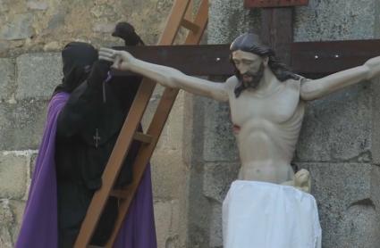Una de las imágenes más sobrecogedoras de la tarde la ha dejado Cáceres. El Santo Entierro ha procesionado por la ciudad monumental al toque de esquila y tambor, en un cortejo marcado por el silencio y la solemnidad. Junto a la imagen de Cristo en la urna, le acompaña la Santísima Virgen de la Soledad. La estación de penitencia comenzaba con la urna vacía y destaca especialmente por la ceremonia del descendimiento, realizada en la Plaza de San Pablo, uno de los momentos más simbólicos del recorrido.