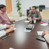 El candidato del PSOE a la Presidencia de la Junta de Extremadura, Miguel Ángel Gallardo, en una reunión este sábado con representantes de la Asociación Profesional de Atención a Familias de Extremadura (APA-FEX).