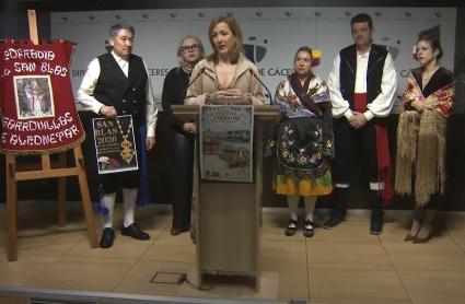 La diputada provincial María Toscano ha acompañado a la alcaldesa de Garrovillas de Alconétar, Elisabeth Martín Declara, en la presentación de la programación de San Blas, que ha calificado como "un gran legado que nos dejaron nuestros antepasados", ya que el registro de la Cofradía de San Blas data de 1592.