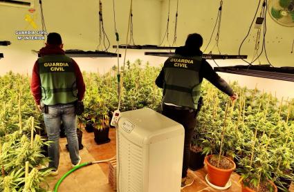 La primera de las actuaciones se desarrolló en una vivienda donde los agentes, tras las correspondientes gestiones de investigación, procedieron a realizar un registro autorizado judicialmente, en el que localizaron una plantación interior de marihuana perfectamente acondicionada, distribuida en cuatro estancias independientes, cada una destinada a una fase concreta del cultivo.