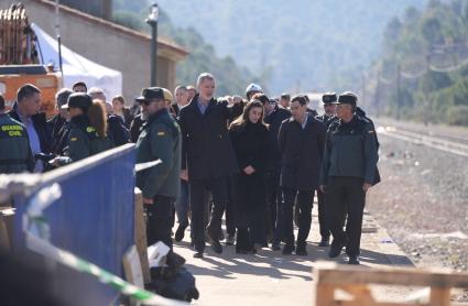 Los Reyes Felipe VI y Letizia, acompañados por el presidente de la Junta de Andalucía, Juanma Moreno, visita la zona cero del accidente sufrido entre dos trenes en Adamuz (Córdoba).