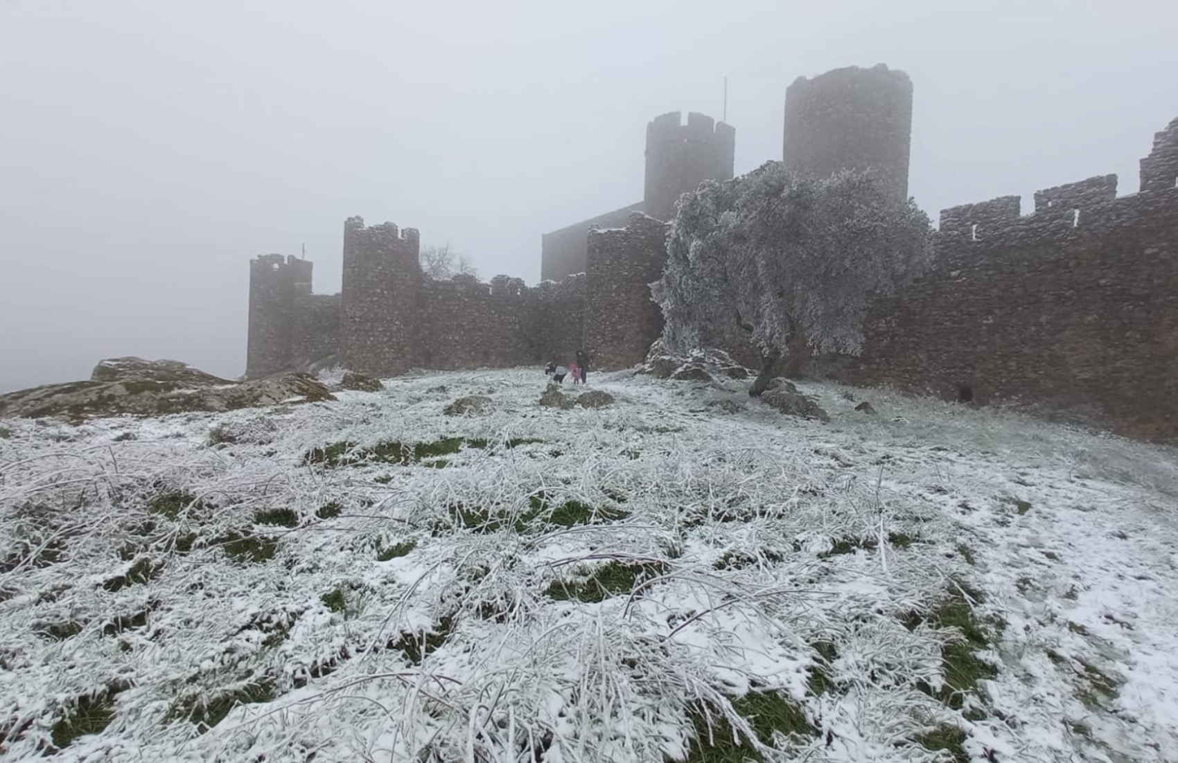 Durante la tarde del sábado la nieve llegaba también a las comarcas del oeste de la región, como Valencia de Alcántara o Alburquerque, alrededor de los 500 metros de altitud.