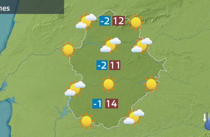 Así, comenzaremos la semana con heladas generalizadas en las dos provincias. En fondos de valle y en cumbre el mercurio caerá hasta los -3 y -4ºC. En el resto los registros serán más altos. En cualquier caso, tiempo frío propio de enero. La tarde, en cambio, será más suave puesto que suben las máximas. No se descarta rondar los 15 en las proximidades del Tajo. Serán muchos los municipios extremeños que superen los 12-13ºC. En cuanto al estado del cielo, se colarán nubes de tipo medio y de tipo alto sin mayor interés.
