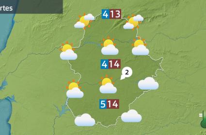 Mañana el cielo estará muy nuboso por la mañana en buena parte de la región, aunque por el norte y oeste irán abriéndose claros que por la tarde irán a más. También las nubes se retirarán por la tarde del sur de la región, en un día en el que el viento soplará del nordeste con rachas flojas en general. Las temperaturas se quedarán sin cambios en las máximas, mientras que las mínimas estarán por debajo de los 6 ºC en toda Extremadura.
