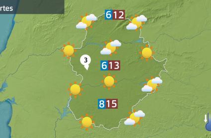 Con todo esto, el cielo se quedará más despejado. Solamente algunas nubes altas que por la tarde serán menos destacables. Con respecto al viento mencionado, las rachas no superarán los 30 km/h. Pero se notará más en la franja central de la región y hacia la raya, así como en las sierras del norte de Cáceres.