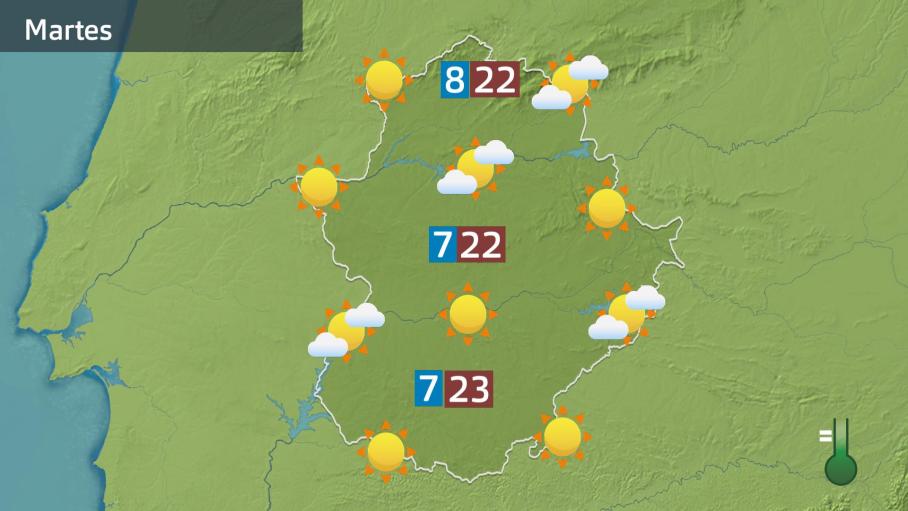 La tarde del martes ha dejado un repunte al alza en los termómetros de la región. Las máximas han pasado de los 20ºC en numerosos municipios; hasta 25 se han alcanzado en Mérida y en Badajoz. También se ha desarrollado nubosidad de evolución en las sierras del centro y del sur, pero más desorganizada que en la jornada de ayer.