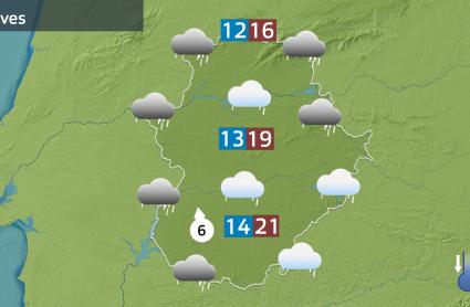Las precipitaciones avanzarán desde por la mañana sobre todo por la zona norte de Cáceres y al oeste de la región, pero de forma débil e intermitente también hacia el esto de la región. Unas lluvias que por la tarde ganarán protagonismo en todas la comarcas y antes o después lloverá. Serán más importantes en las sierras del norte cacereño, donde estarán en aviso amarillo.