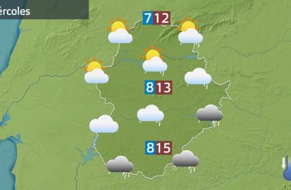 Las precipitaciones asociadas a ese frente se concentrarán en la próxima madrugada y durante buena parte de la mañana en el este y sur de la región. Hasta mediodía serán muy probables y en algunos cosas destacables en el sur pacense, Villuercas, así como en la Serena y la Siberia. Intermitentes en el Jerte y la Vera, y también en el Tajo, y celo cubierto en el resto.
