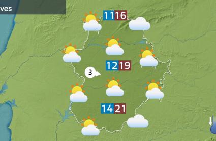 Mañana tendremos todavía mucha nubosidad a lo largo del día. Serán nubes altas y nubes de evolución que incluso dejarán algo de precipitaciones débiles en las horas centrales del día. Serán lloviznas y chubascos más probables hacia la Siberia, Villuercas y norte de Cáceres. Todo con temperaturas que descenderán entre 2 y 4 grados de manera general. Y viento del oeste pero no pasaremos de los 40 km/h en ningún punto de la región.